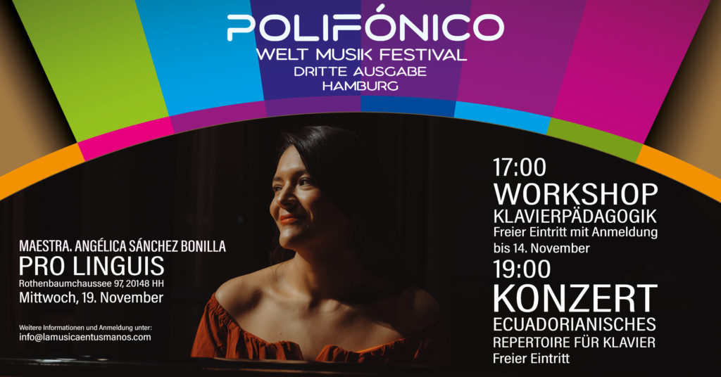 Hamburg freut sich auf die dritte Ausgabe des Festivals POLIFÓNICO – ein musikalisches Treffen, das die Interkulturalität feiert und den künstlerischen Dialog zwischen Lateinamerika und Deutschland fördert. Organisiert von „Die Musik in deinen Händen“, findet das Festival vom 19. bis 22. November statt – am ersten Tag, Mittwoch, den 19. November, ist es bei pro linguis zu Gast.