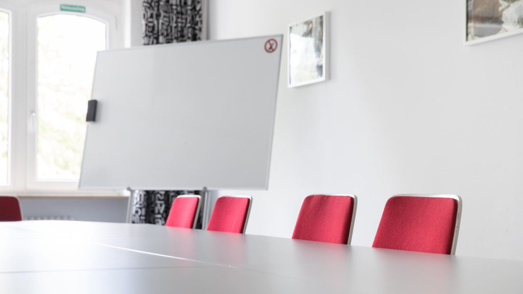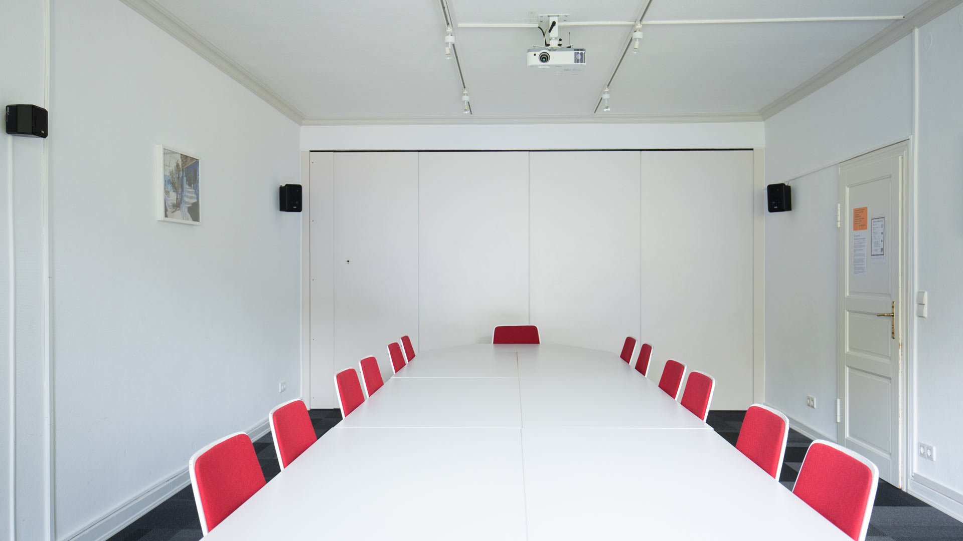 Dieser im 2. OG gelegene Raum (32 m²) ist für 10-40 Personen geeignet und ist mit folgendem Equipment ausgestattet: Fernseher, DVD-/CD-Player, Whiteboard.